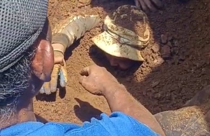 Setelah berjibaku waktu bertarung selama kurang lebih 10 menit yang terasa begitu lama, korban akhirnya berhasil ditemukan dan dievakuasi dari timbunan tanah.